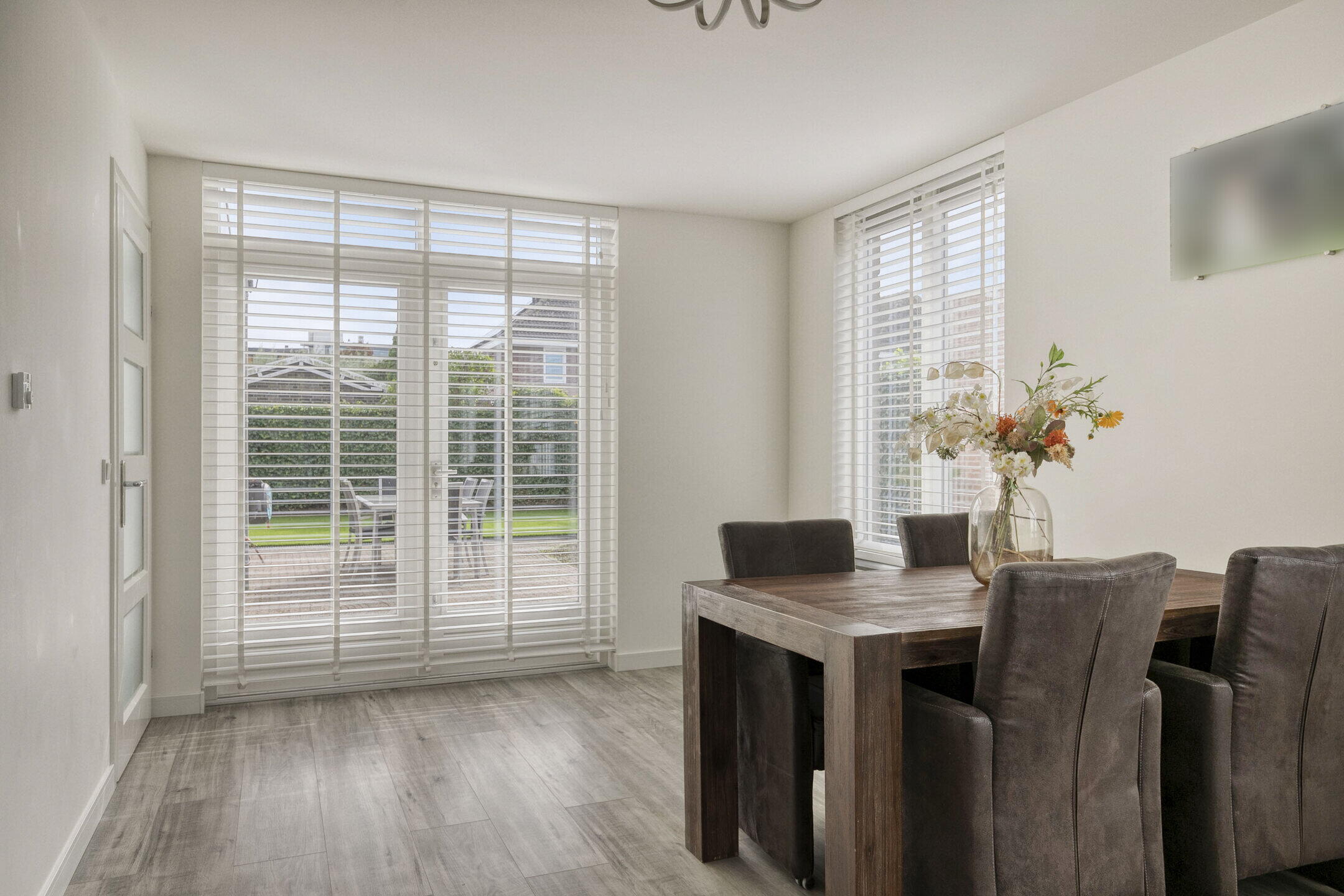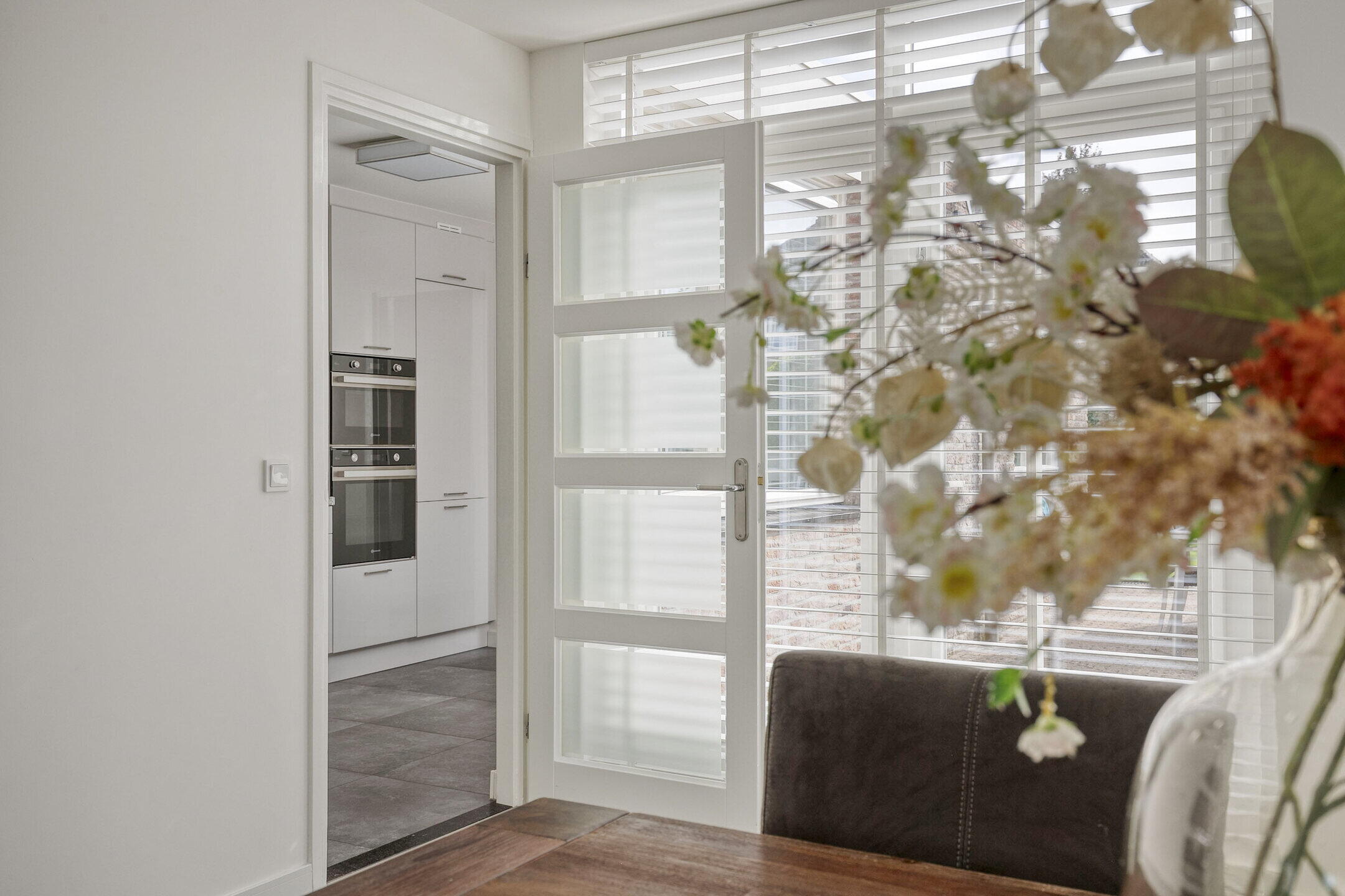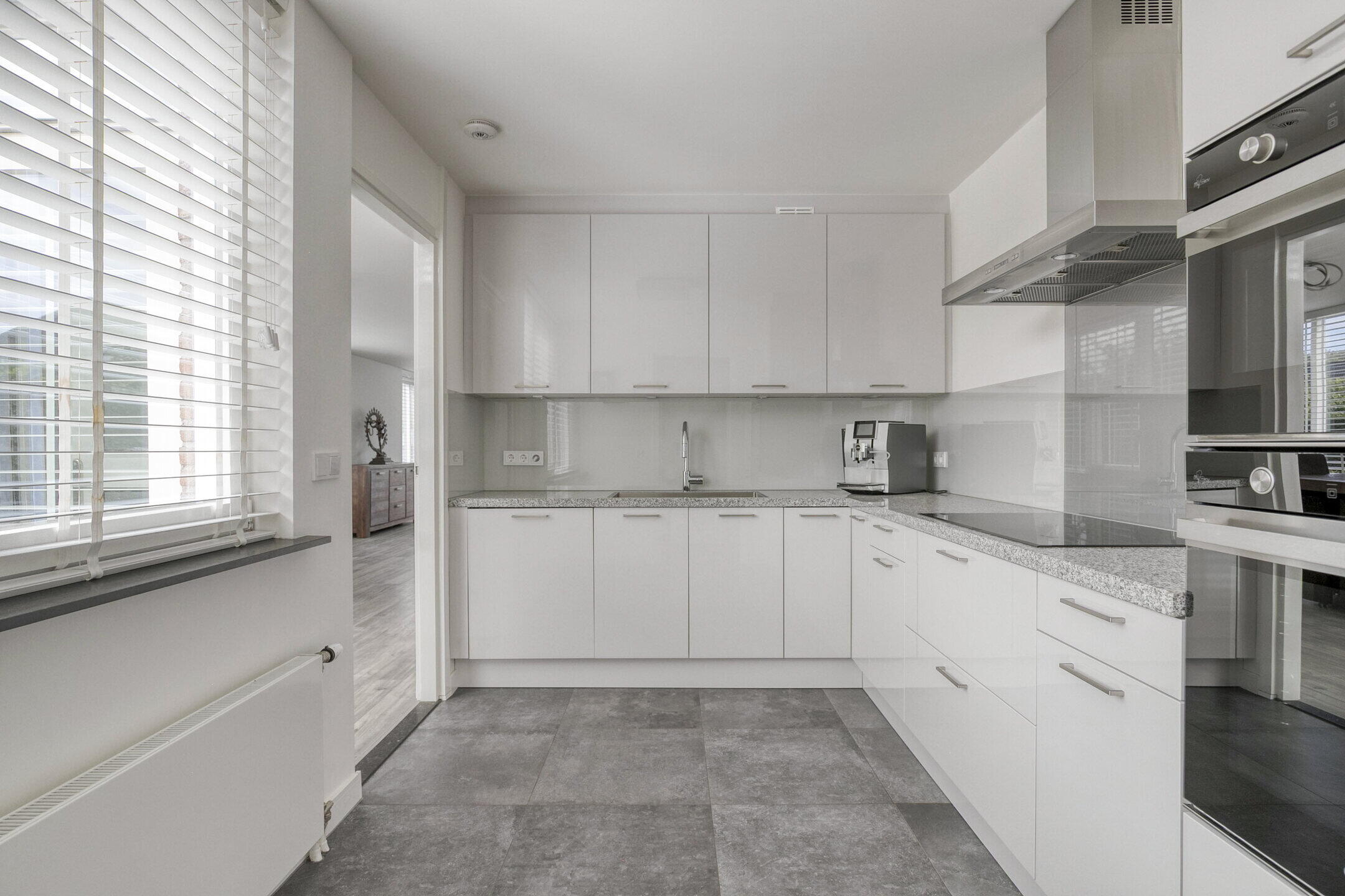 De woonkamer is heerlijk licht door de grote ramen en biedt ruimte voor een royale zithoek, eethoek én extra kastruimte. De sfeer is warm en uitnodigend, perfect voor lange avonden met familie of vrienden. Via een deur bereik je de keuken, waar strak wit de boventoon voert. Netjes afgewerkt, voorzien van diverse luxe inbouwapparatuur én meer dan genoeg lades voor servies, pannen en keukengerei. Hier kook je met plezier!